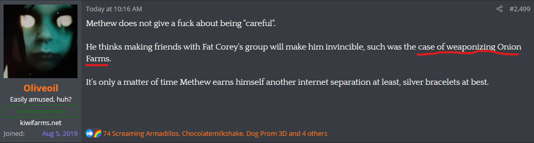 Douche is a cunt because she screams "They be mean to me... er... strangers... but me only care about contacting one. Hur hur fuck all the others, cuz they not me... er..." WHILE POSTING ON COMMIE FARMS!!!