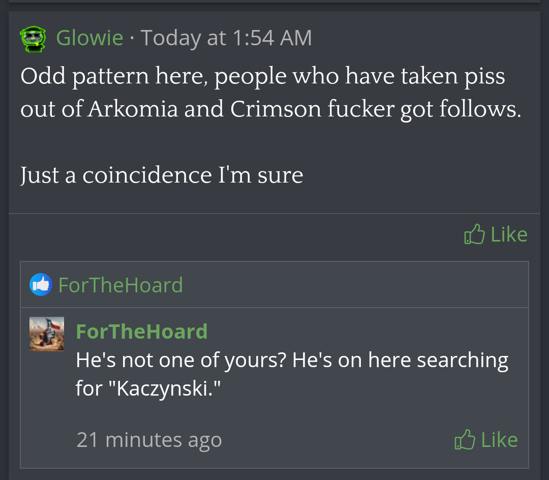 @Crimson Fucker wanna bet on glowie reporting this guy to the fagmins?