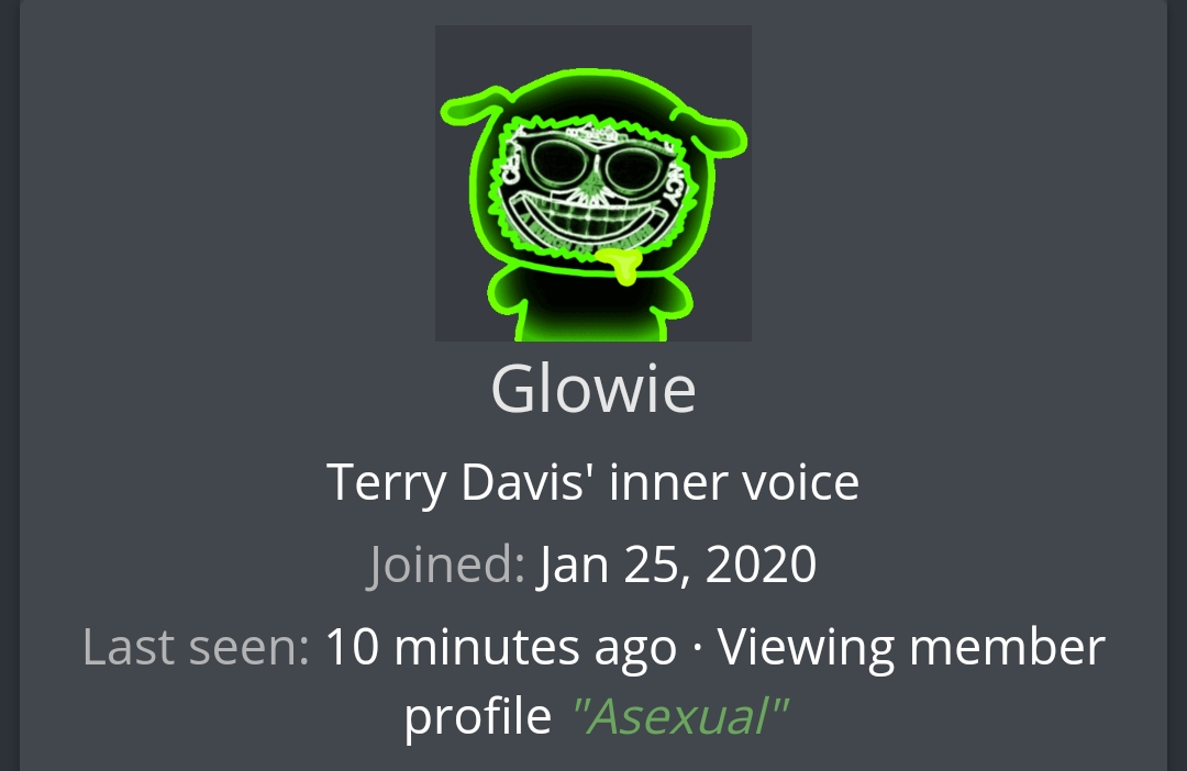 I mean it can’t really get more confirmed than him straight up saying he’s asexualGlowie is a cripple with a broken dick confirmed.