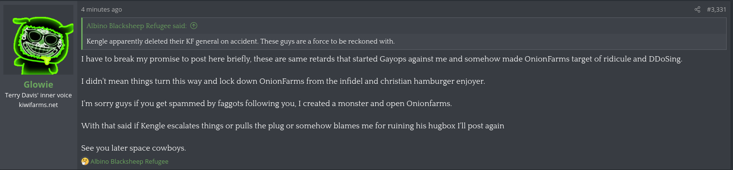 He keeps saying the quiet parts out loud. He wouldn't know about the group dm chain if it weren't for Gaylord socker. Especially at the time of his first post about it. Gaylord is mad he got backstabbed by both when glowie learned gaylord socker's been talking shit about him for their gay ops. And he can't keep his mouth shut about gay ops for the chance at ass pats. Unfortunately for him those ass pats are more like spankings from his peers.View attachment 51012