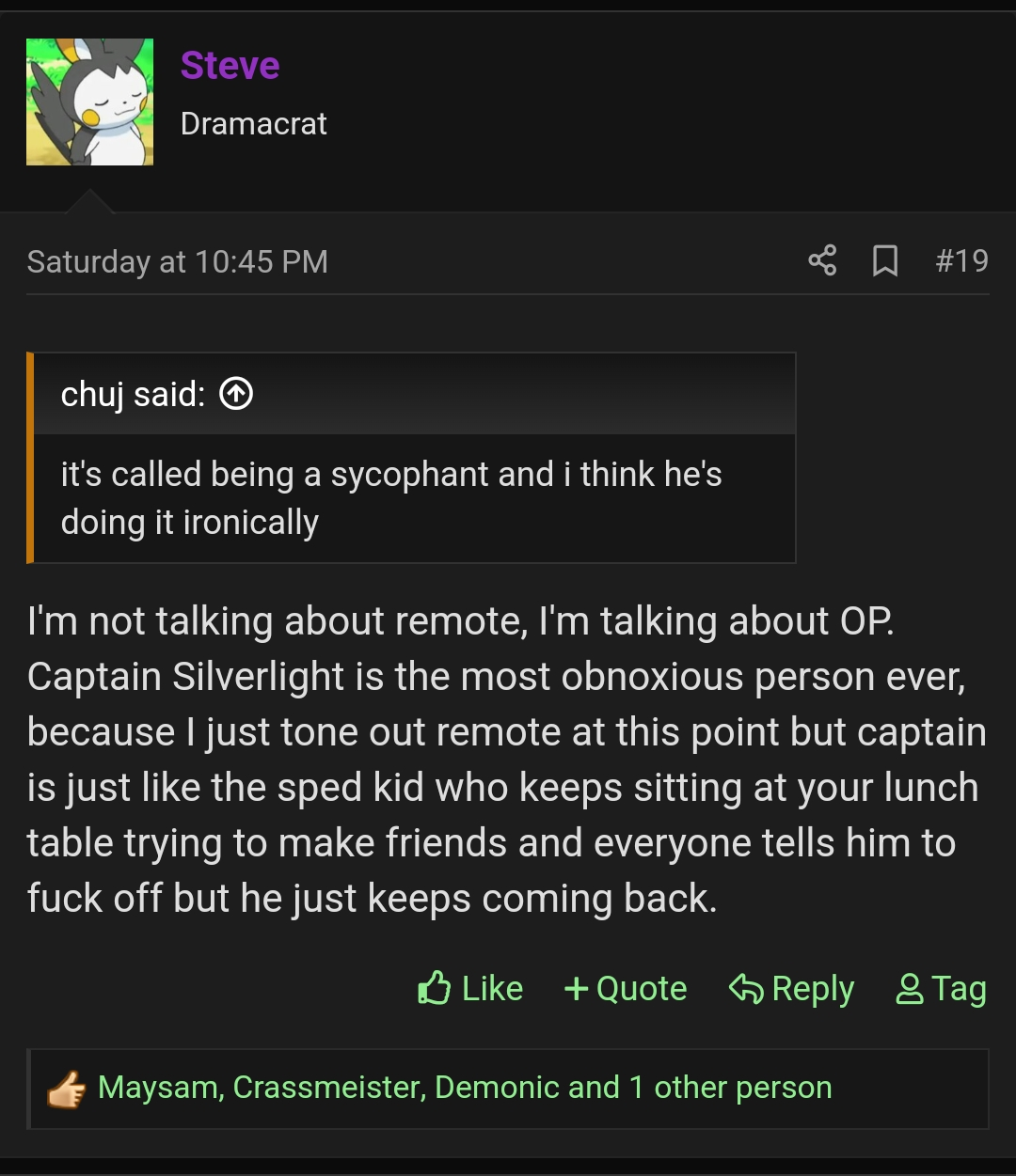 yeah, or it could be EDF's mod LikeIcare since I argued with him recently. explanation: