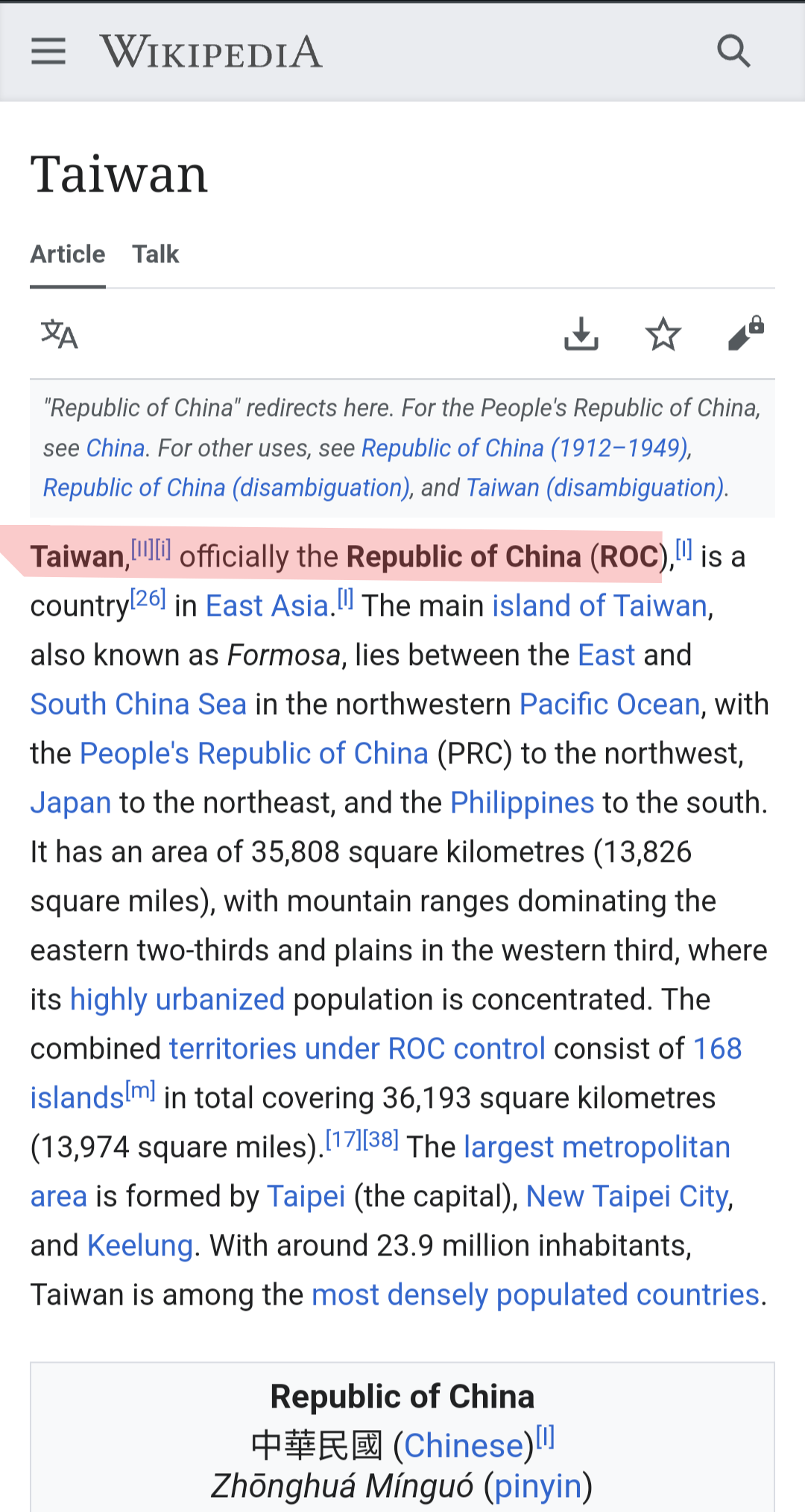 Calling it Republic of China is literally Chinese propaganda. Taiwan claims to be independent and the US just supports them so we have a place to launch missiles from when we inevitably go to war with them and they can hit us.