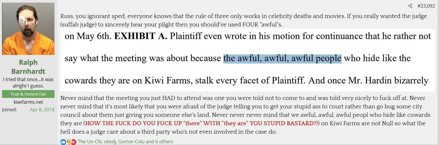 Didn't Ralph used to make Ventrillo harassment videos before giving up when Vent died and instead spends all day on Kiwi Farms.