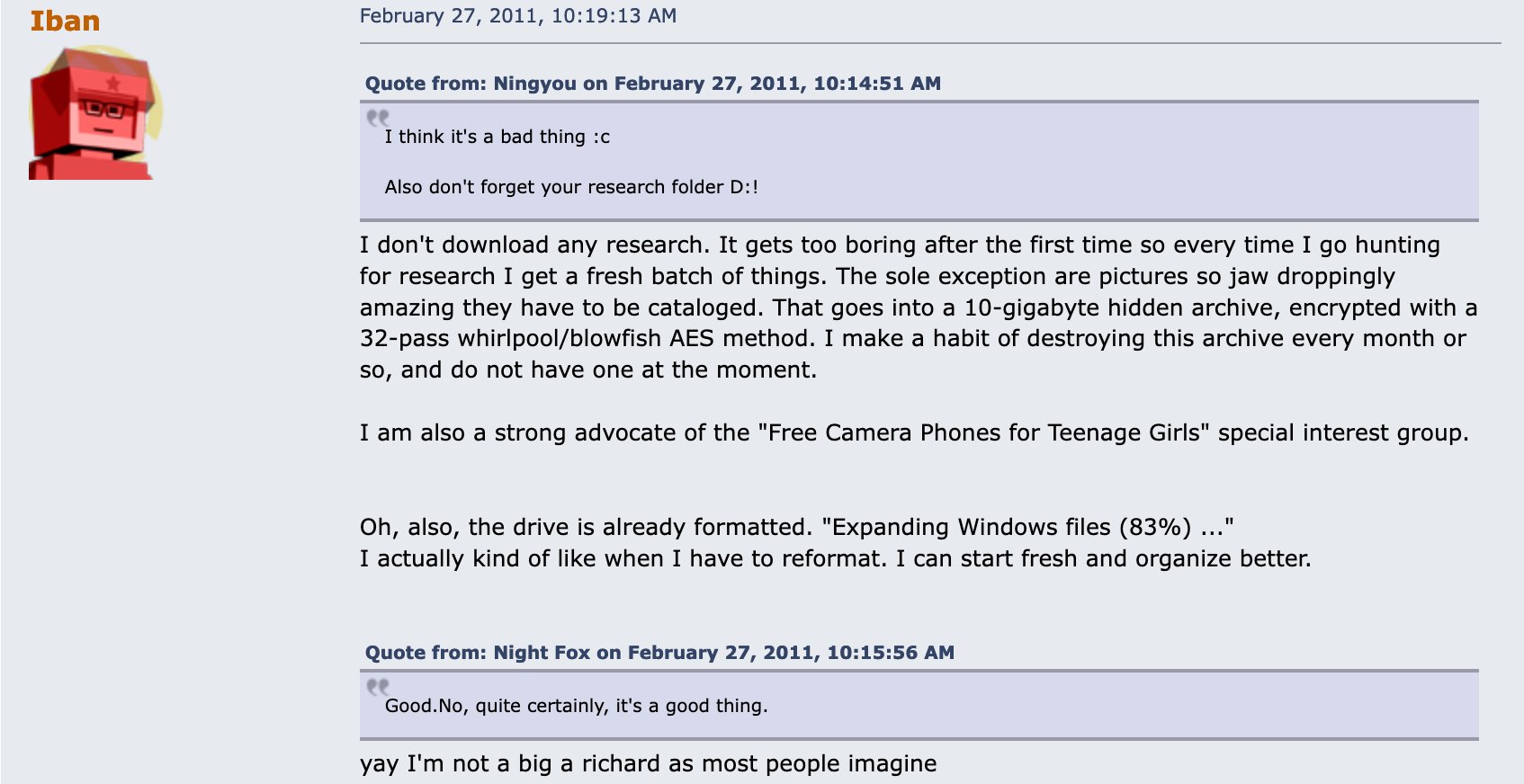 @4:03:35 - Josh singles out AnimeSucksCopeAndSneed for spamming his chat. And mentions that he is banned from the forum.