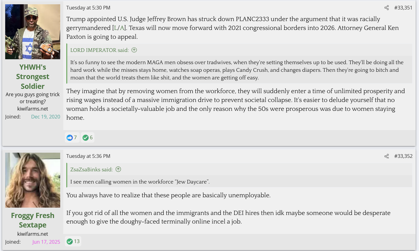 JD Vance, Stephen Miller and other officials in the Trump administration have retweeted and even followed on Twitter numerous accounts like the ones they're talking about. They still retweet posts from people like Captive Dreamer and Solionath. The official Homeland Security account spammed AI generated Halo memes. It goes beyond literal who's shitposting."Modern MAGA" aren't these Twitter internet ecelebs with podcasts. Opinions like this come from people who live online. There is no "obsession with tradwives" from anyone than a small group of losers.