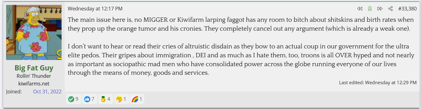 this is actually a really fucked up tweet, MTG accused one of his admins of swatting her personally and he was talking shit about her because she liked a Fuentes tweet at some point in the last 5 years, now he's going "i always loved her" like a chick. fuck him