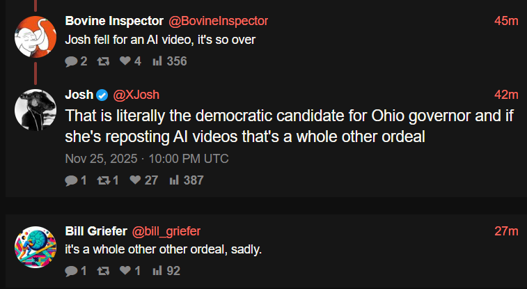Null is trying to pressure the Ohio GOP to kick out Vivek Ramaswamy after falling for an AI generated video his Democrat opponent made of him calling for year round schooling.