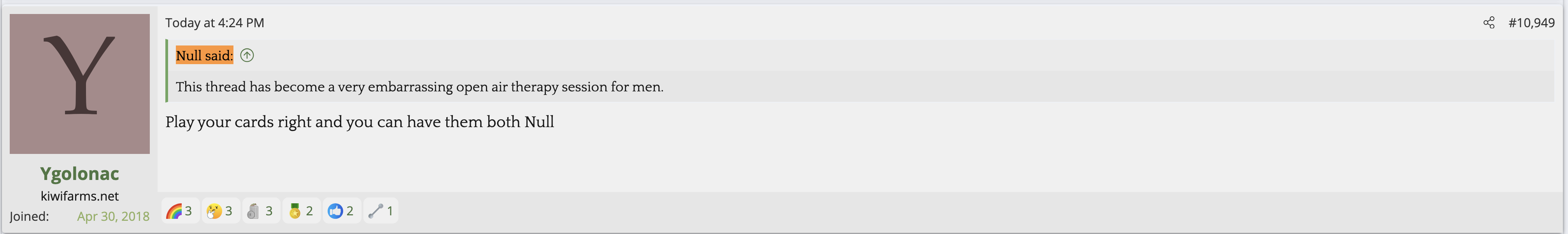 VAIDS Victim Cumsock Dodger An Onion Among Onions Today at 9:46 PM #27,022 thefrogninja said: He's still coping about how poorly the interview went for him and how bad it makes his website look. View attachment 107122View attachment 107121 Click to expand... It's like when he interviewed that Sam Hyde girl. He loves to jump the gun.