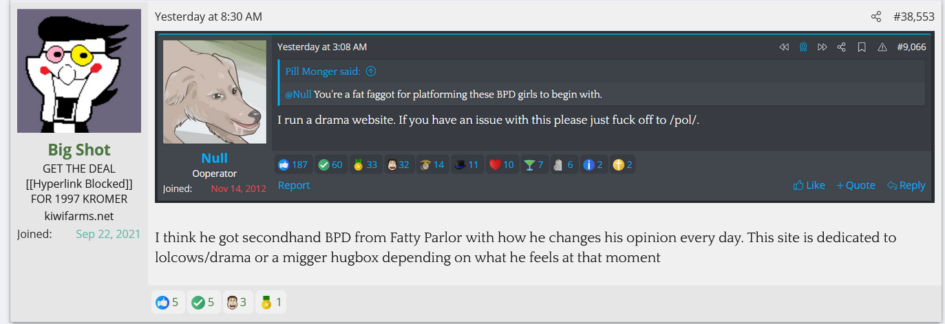 I find it funny how Null is still on the white nationalist shit even though it's brought him nothing but mockery and shame and the whole movement is seen as more weak and feckless than ever before. You'd think after the 500th reply from an Indian/black guy calling him a weak feminine cumskin who's going to go extinct, he'd shut his mouth.