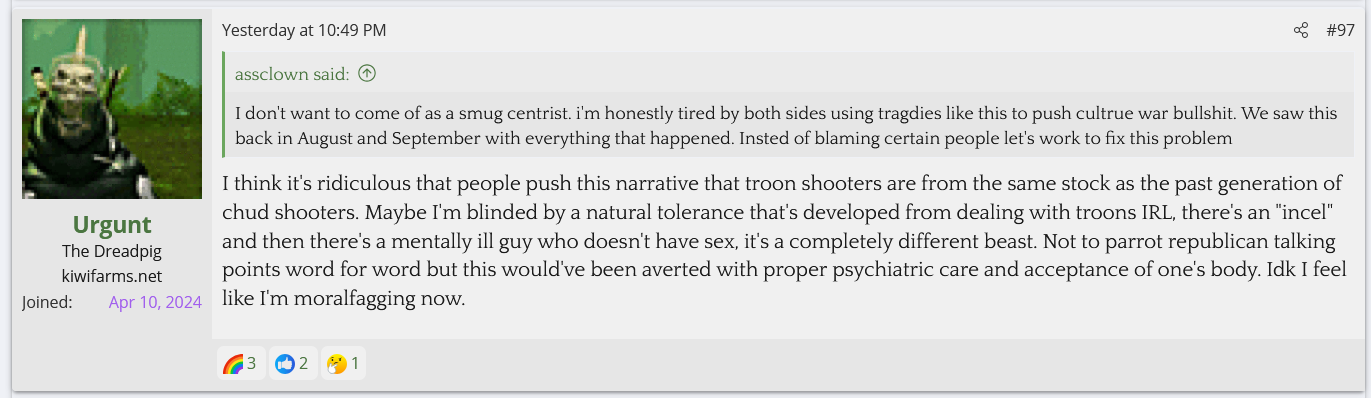 I ipreferpickles An Onion Among Onions Today at 1:04 AM #27,364 Saying you want a transsexual to kill themself is now a bannable offense on modern day Kiwi Farms.