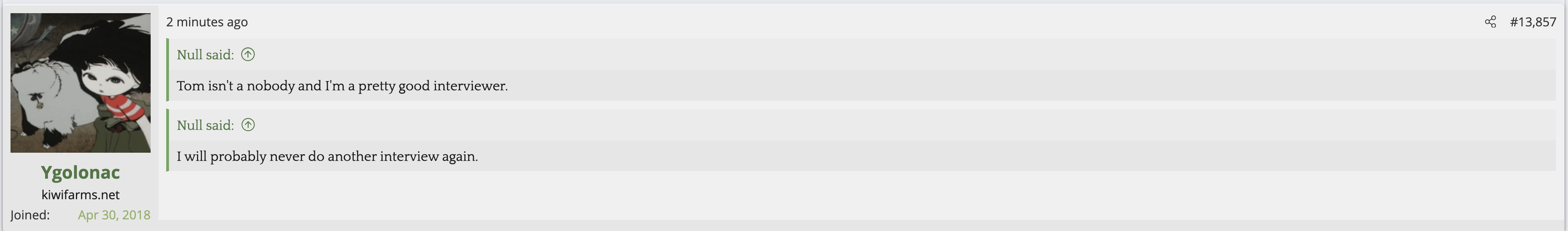 Null's complete meltdown.