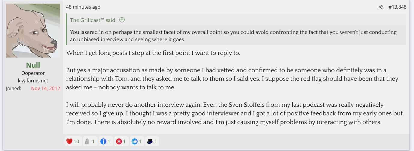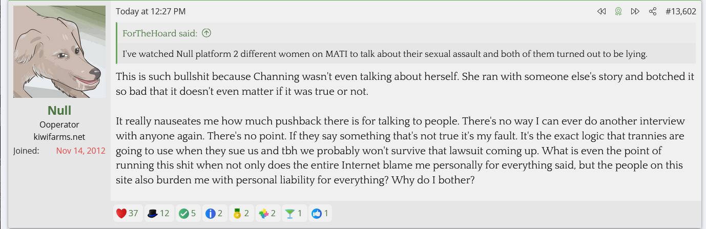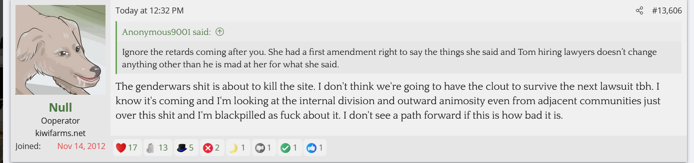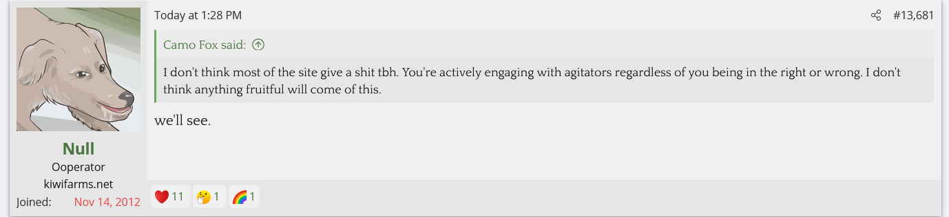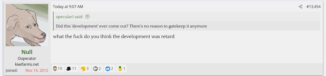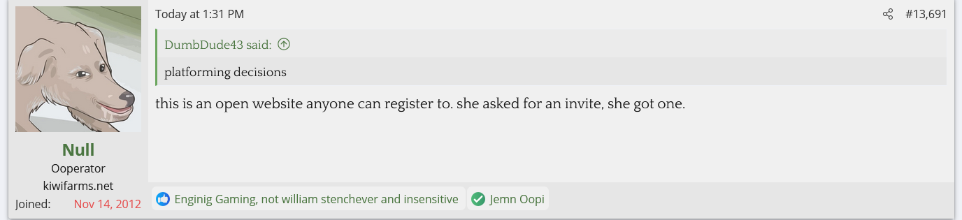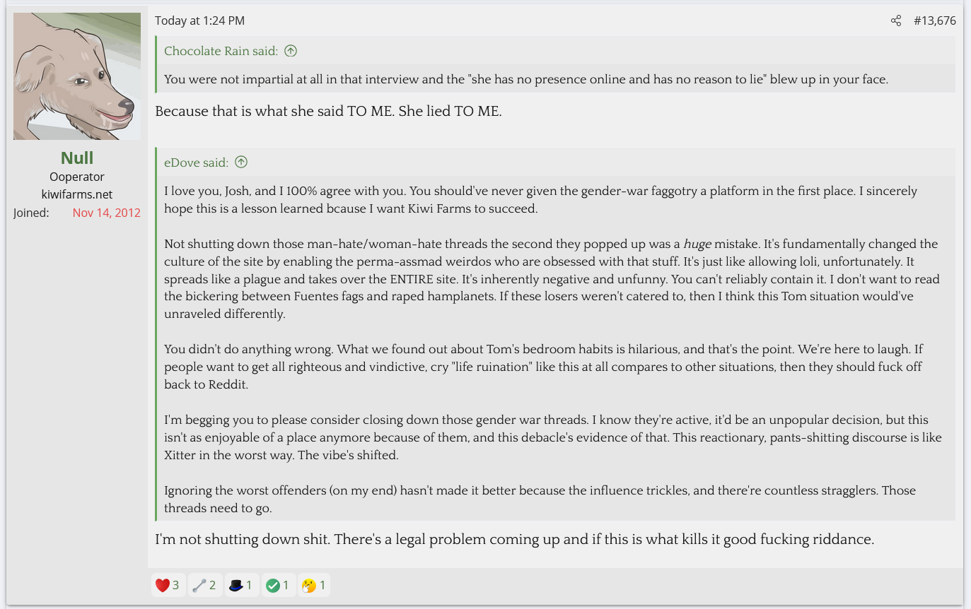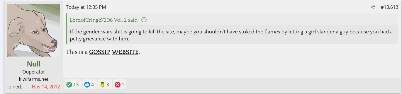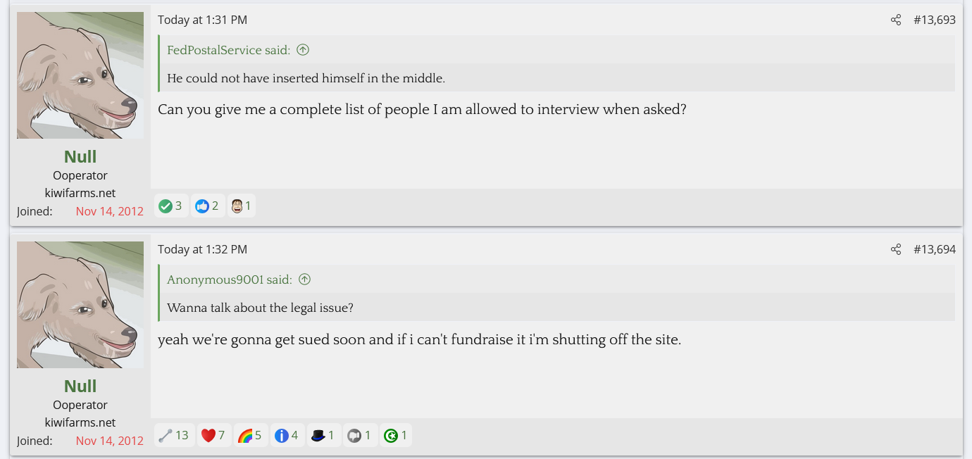 This is a relativity simple question to answer and the answer is that Kiwi Farms is a honeypot.