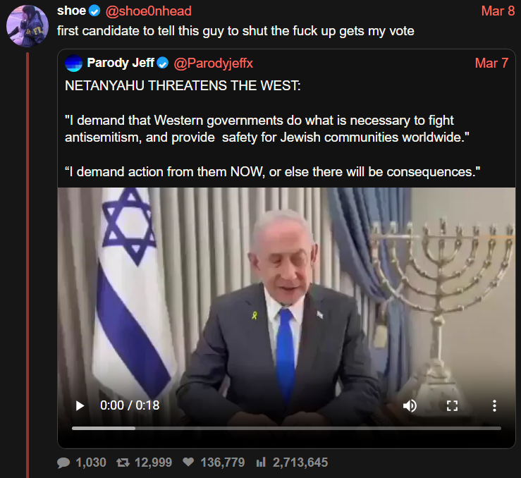 This is the guy Null was supporting against Vivek before Casey dropped MAGA, said Fuentes was cool and now he's posting things like this while Null is banning people from threads for being too critical of Israel.