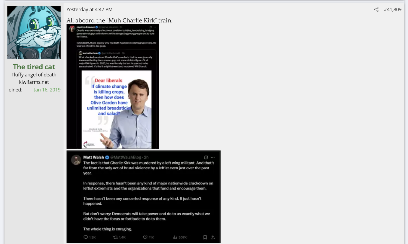 And I can at least understand that. Null is desperate and needs cash and the retards on A&H give it to him in exchange for him making a hugbox for them. What I don't understand is how he allows the liberals on the the site to act the way they do. For fuck's sake, you have the TES thread going full Reddit by saying they support people like Stonetoss getting doxed by leftists and that they want the DOGE workers and their families executed by firing squads, with mods supporting said violence. The Metokur thread looks like this now: