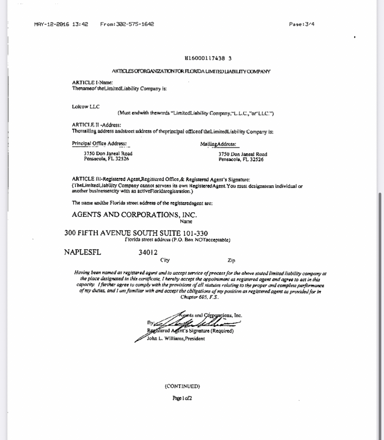 Next we have the documents for Lolcow LLC containing Josh’s signature: