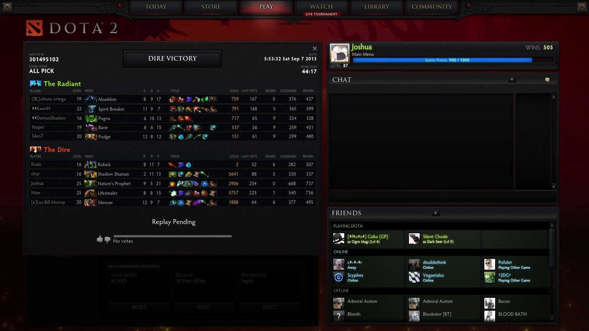 In some screencaps on Josh’s Steam, we can get an idea as to who he was/is friends with (friends lists in bottom right of the screen):