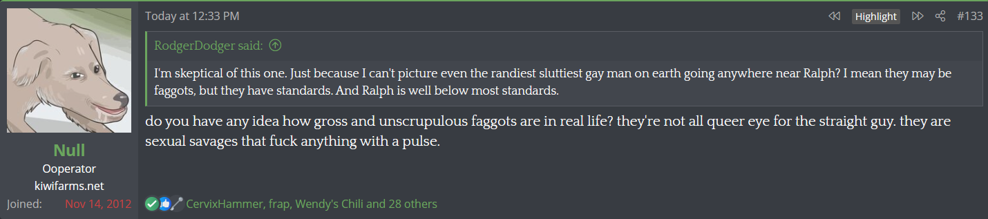 Stop calling out faggots on the gunt board who flagged Ralph on nulls orders your contributing to null being swatted