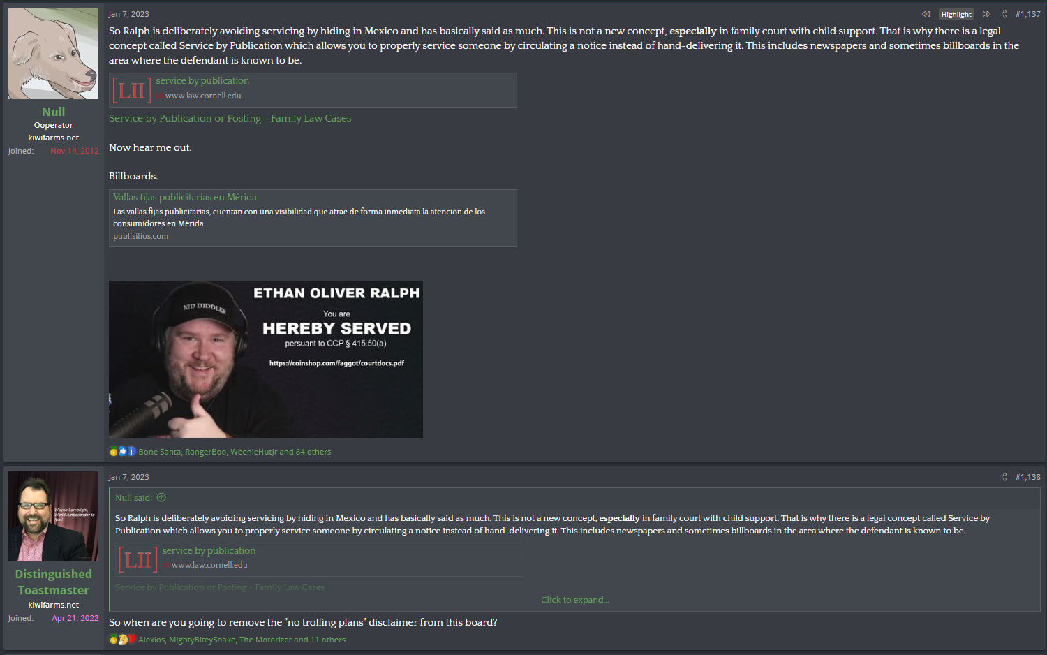 Josh is very scared of legal actions with all these disavowels of Strasse. The guy who hacked Killstream.tv joined the forum to share his hacked content. No warning. No suspension. No disavowels. The guy even participated in the guntchat.