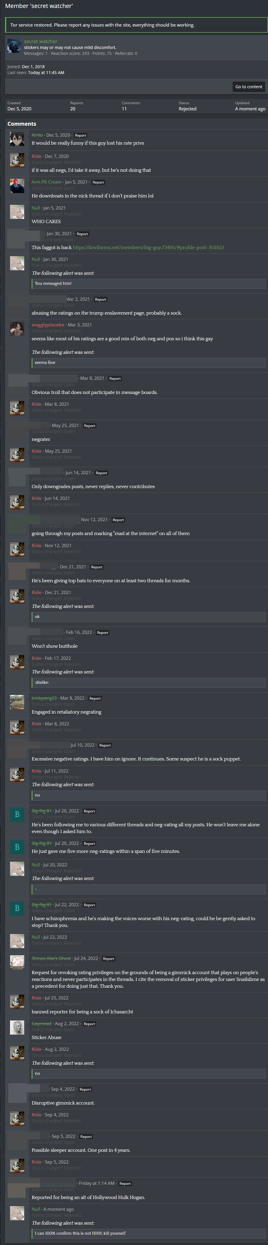 Null has become frustrated at people reporting secret watcher and made a thread about it.
