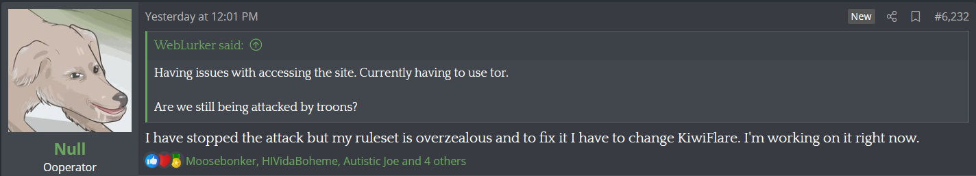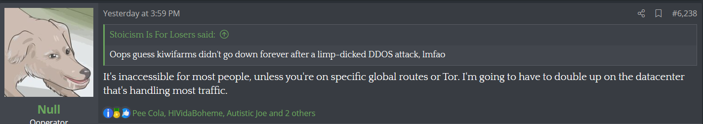 Null gets like that whenever he feels threatened, like the ongoing site attacks. It's his ODD flaring up.So Mr. "Centrist" has gone full "all or nothing" extremist.