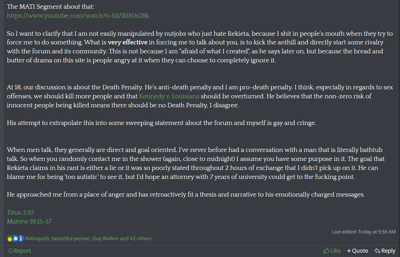 For those of you who are new to this thread, if you wanna know why I change the font on Null's statements to make it look like code, here's why, from the mouth of his ex-Not-Really-friend Rekieta: