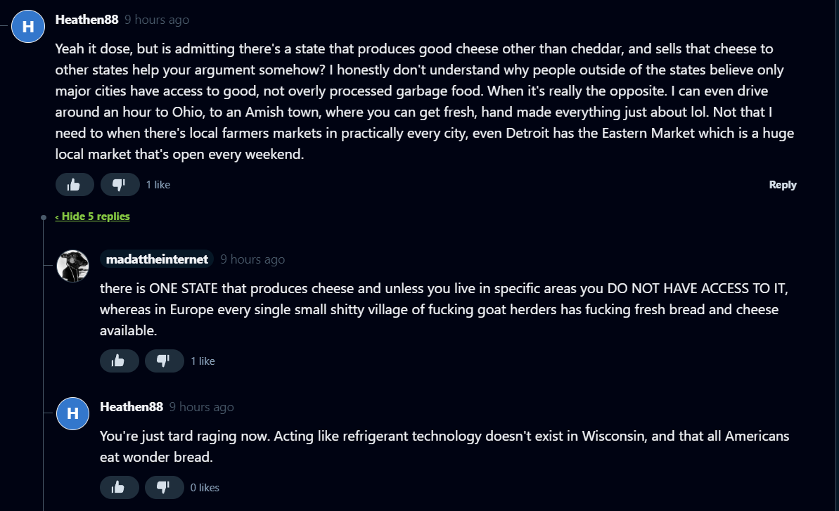 Do not make fun of Null's opinions on American bread and cheese.
