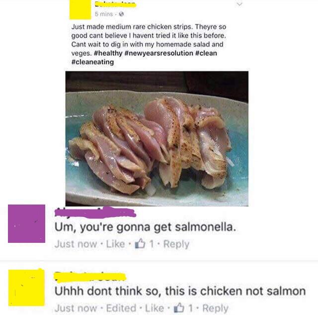 My personal favorite thing from Instagram is the "medium rare chicken strips," as that sounds like something a bad celebrity chef could come up with. I think it was a troll post but the replies, genuine or otherwise, were pretty funny.