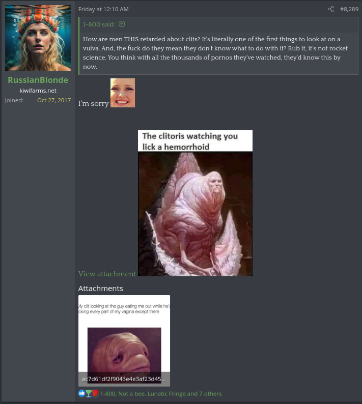 SIG invited a couple of my alts to a pm chain, I posted gore in it with one of them and watched their reaction with another and told their report fagging attempt failed to get me off their farm when it got unbanned. They tried to cope about it after saying shit like I'm "obsessed with them", "addicted to the farms", and "they convinced me to do it" when I already made up mind before engaging in conversation. It was just a Sunday afternoon for me back when I still used the site, but I'm bored of it now.