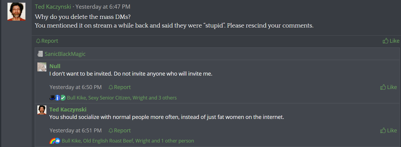 If you take one look at Josh, you can see that he's a sexual market loser just by physiognomy alone. This often (but not always) leads to simping, deviant sexual fetishes, et cetera. Speaking frankly, he strikes me as the kind of guy who desperately wants to be fucked up the ass by a dysgenic BPD girl like AR. I have no proof of this, it's just the feeling that I get from his gay white knight spergouts. Comically, the more he white knights for her and uses mod powers to defend her, the more he proves me right about my accusations of favoritism.