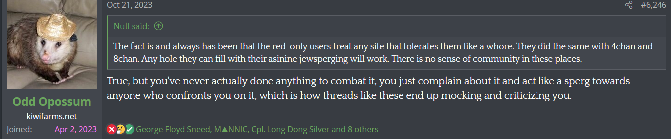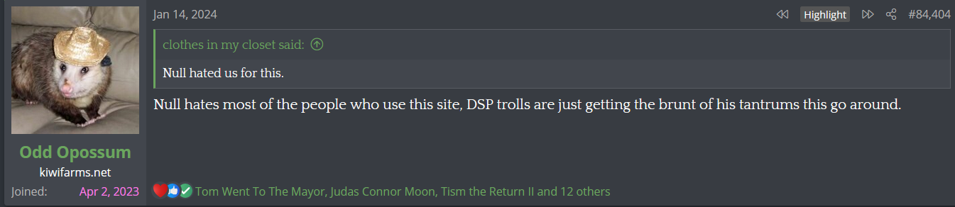Additionally, back when the "woman hate" and "man hate" threads were feuding, people would catch a mod action within an extremely short window after they dunked on lidl drip. Much quicker than usual reports.A couple of things is obvious about the account: