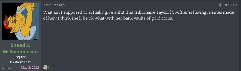 My bad I must have been thinking of another user.Any examples of this? Because he doesn't seem like a Null simp.