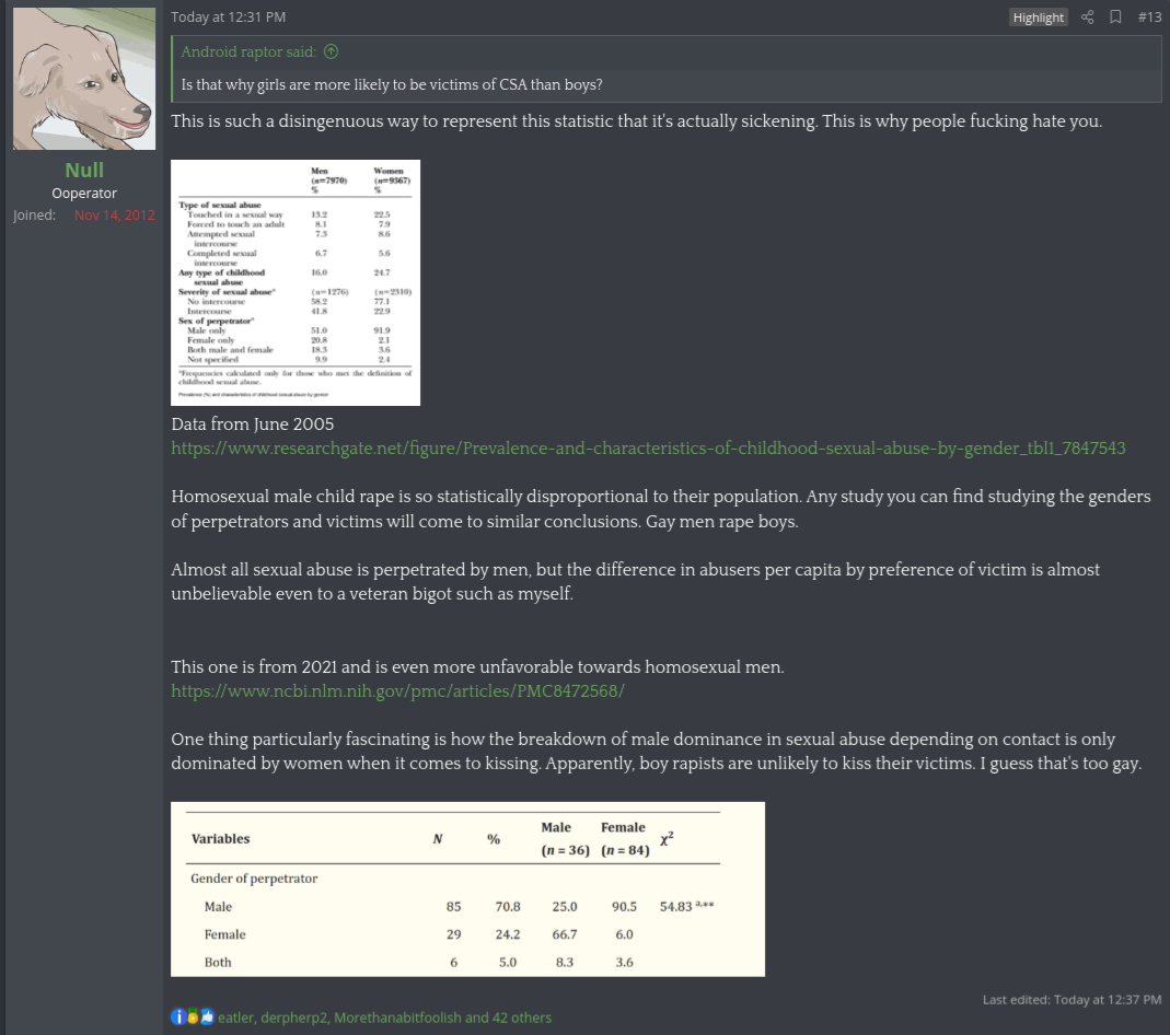 1) The donations to the legal crowdfunder are anonymous, so Null doesn't know who's donating to him and 2) Turkey Tom already has a thread on KF where they constantly drag him and his girlfriend. By your logic Turkey Tom should be one of the very last people to want to donate to Null just because he was a thread. Yet Turkey Tom doesn't seem to care that he has a thread where strangers are disparaging his girlfriend all day long.
