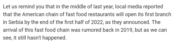 Now Wikipedia will tell you that Burger King didn't open in Serbia until 2023 but I don't trust ol wiki p. So let's take a look. A basic search in english will yield this