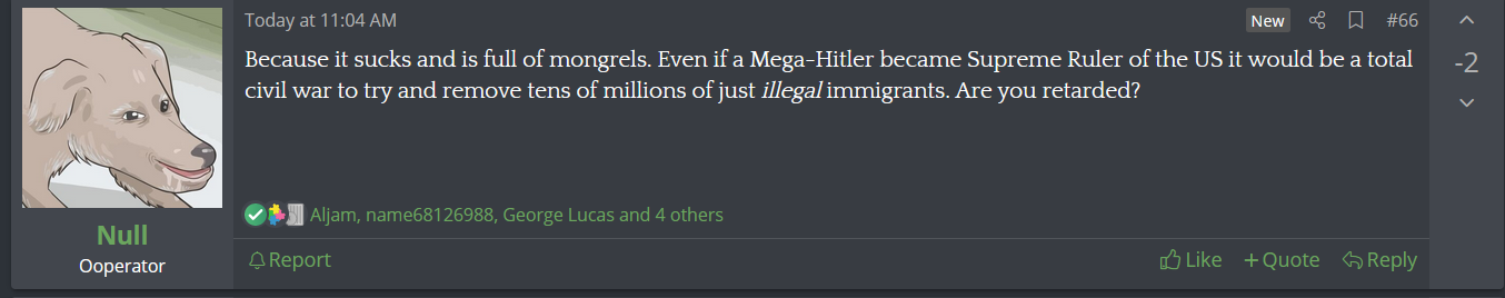 I almost wanna make a Substack account to fight Null on his own turf, but I'm pretty sure he would just delete my comment the moment he realizes it's me calling him out on his "let's confederate, let's have a far right EFF" Kumbaiya bullshit with actual receipts of how he actually treats other people in the free speech sphere.