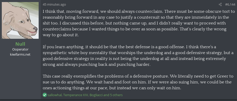 There is no way he'd ever make the smart choice and give in to Greer to avoid legal liability or thousands of wasted dollars (other peoples' dollars, mind you).