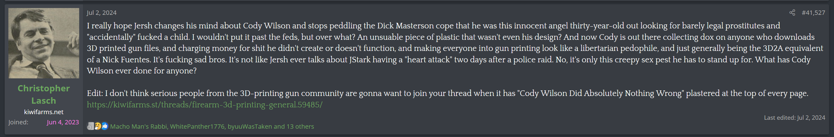 You guys pearl clutch a little too much about Rekakas vices and their prospective outcomes. This is not a disheveled lolcow we are looking at here, this is a real person, his life is tangible, he owns a house, he has a wife, he has a successful father (I think), he has a dergee and he's part of a community made up of actual people. Nick has the tools to overcome his drunk ass. Josh has nothing, if Josh slipped like rekaka, which won't because he's boring, all he'd have in his corner are a bunch pedophiles...