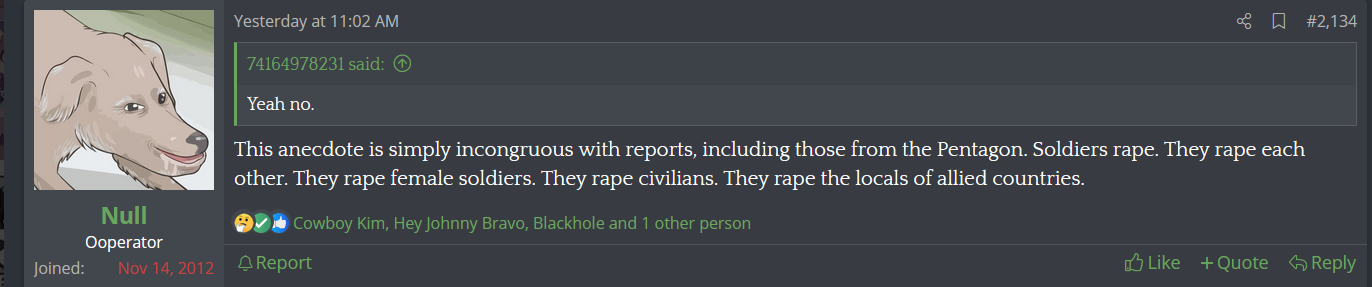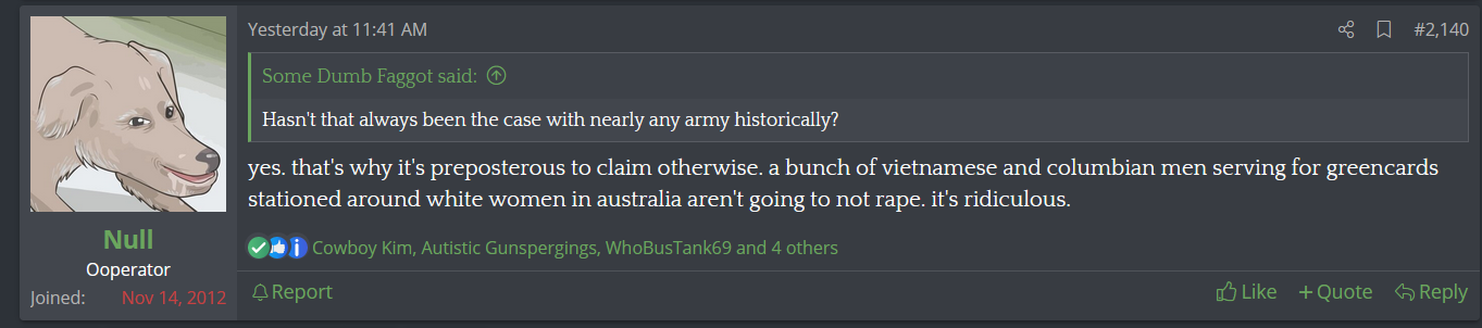 Null goes on a rant against the US military saying they're all rapists, that the military wants to legalize non-white men raping white women and that he hates the US military and thinks they're going to gun him down on Joe Biden's orders if he returns to America.
