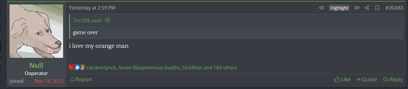 Null is just subtly gloating about all the sick and illegal porn on his site.