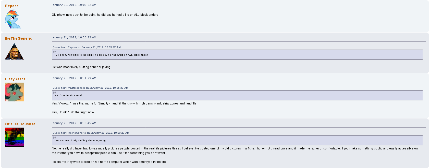 I'd say it's more or less what your personal flavor of gossip is.I always figured that, I just didn't know about the Blockland stuff. I'm not as well versed in internet retardation as others.