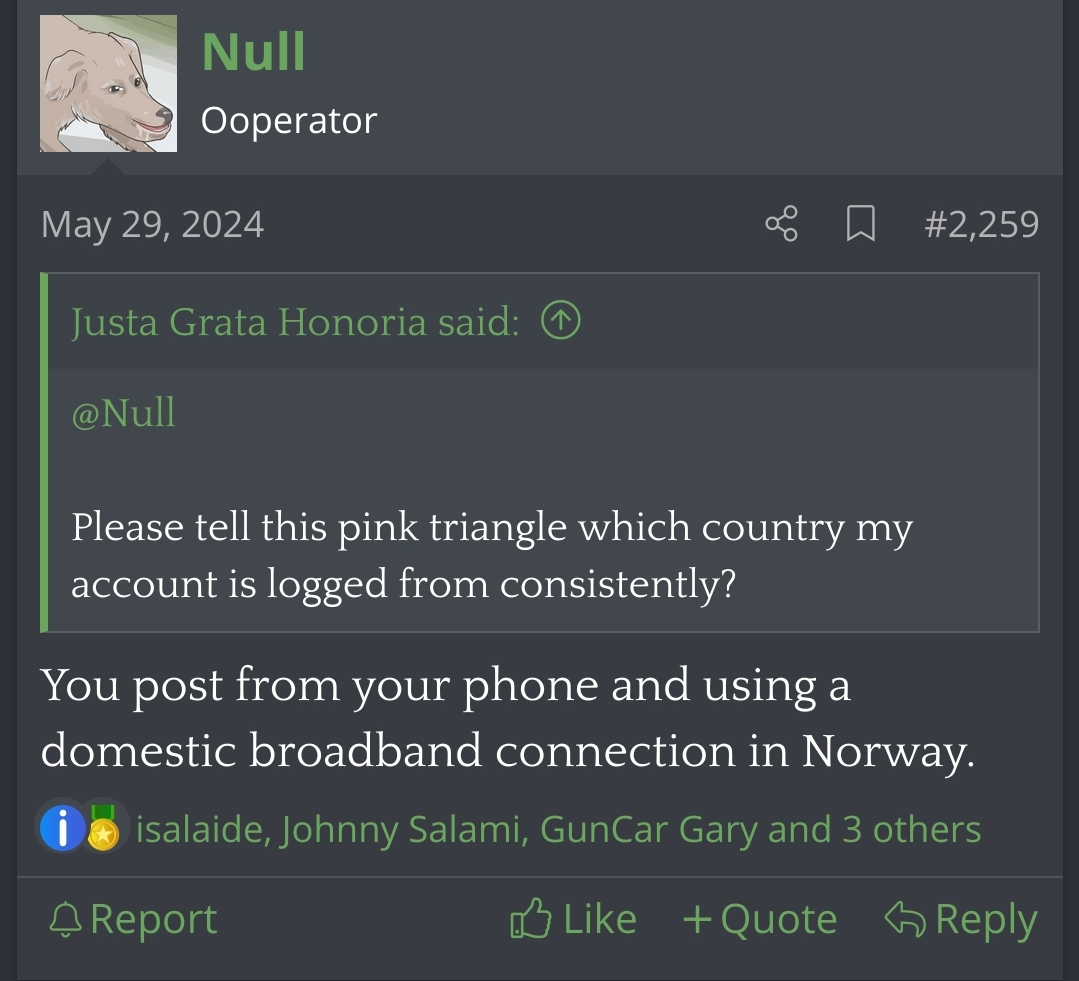the thing about intelligence agencies is that they share information between nations. FBI can subpoena Null for fedposts on the site on behalf of the UK and arrests made in norway via the 9 Eyes agreements. i guarantee null doesnt delete logs of anything because hes a paranoid fragile little baby and wants to track people.
