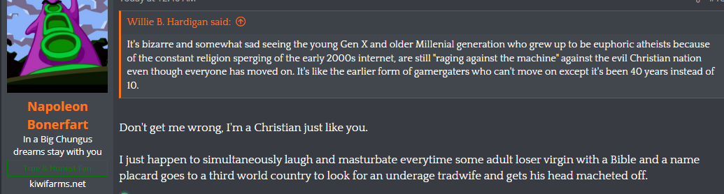 "I'm a Christian like you..." Then proceeds with some un-Christian verbage. Classic kwiffar.