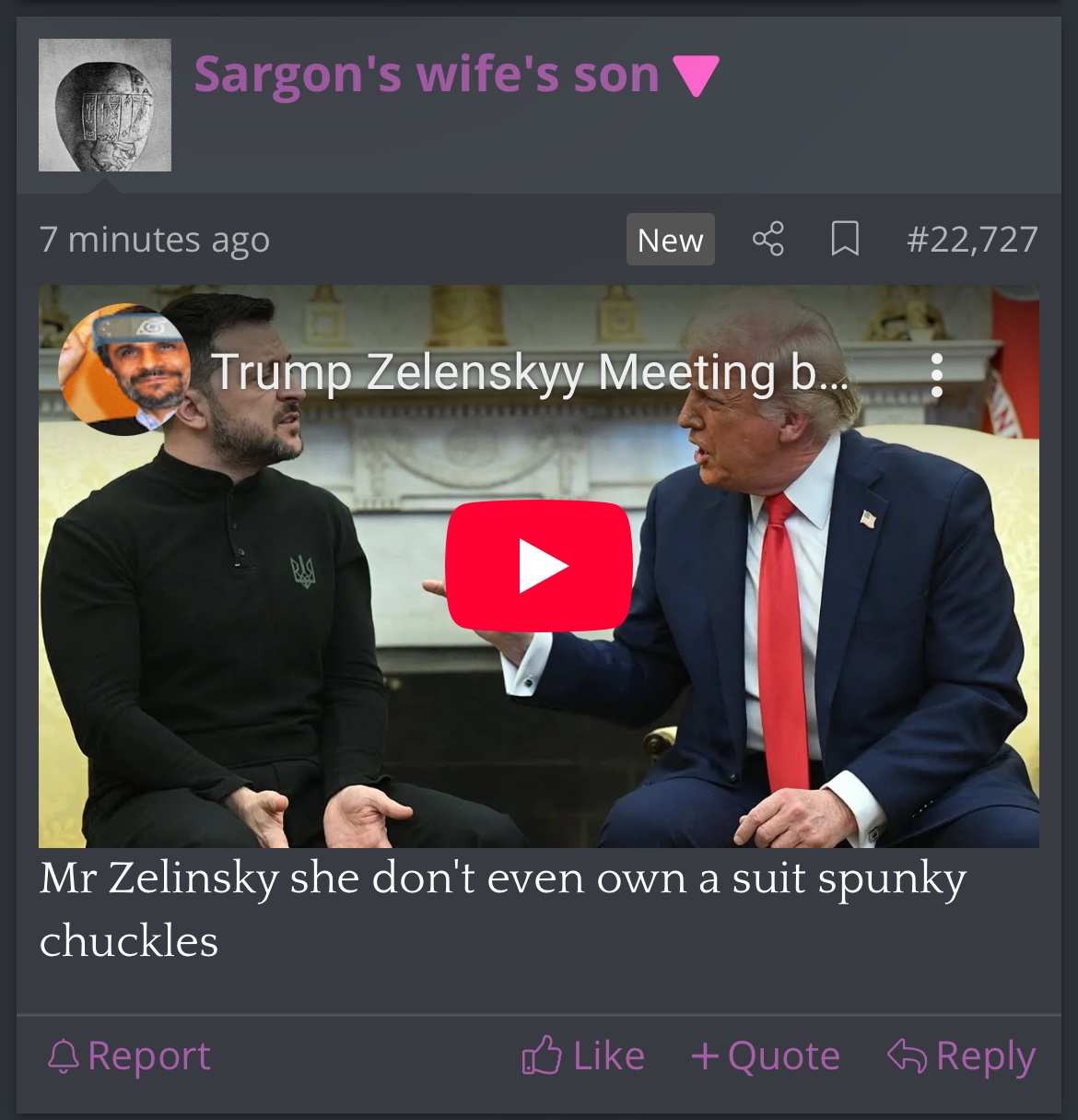 I would have a bit more respect for Josh and Kiwi Farms if they just admitted they're the right wing equivilent of Resetera who call for the banning of anything they dislike, rather than larping as free speech activists.