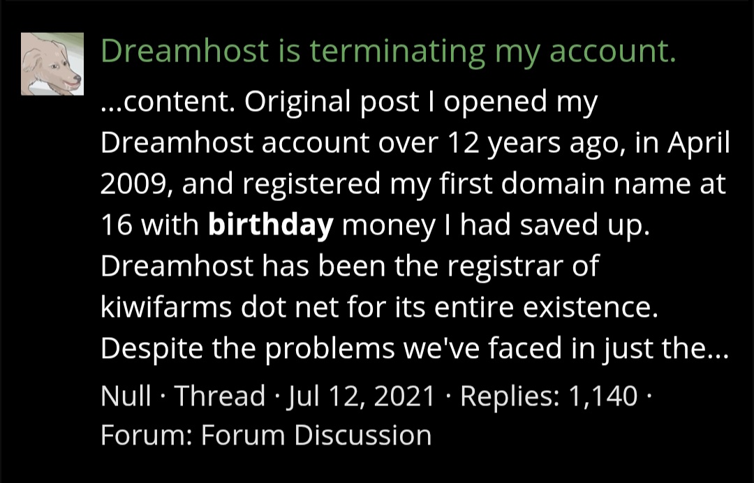 Oh, and most of the "dox" about me in the Kiwi Farms thread is false. As per usual.