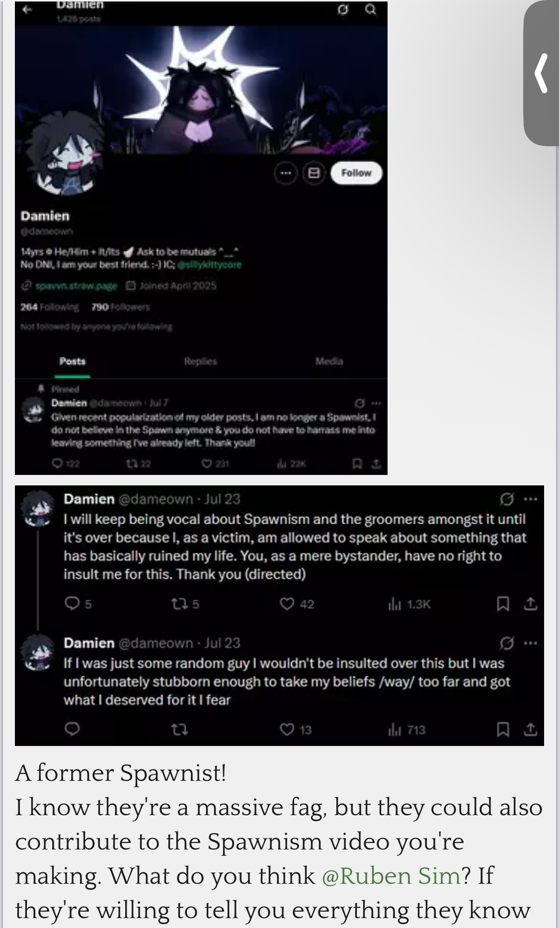 It’s so braindead and retarded cause it ignores the fact that Ruben is a living being with hobbies, a personality, a life outside of this shit. You have to be a new brand of terminally online if you can’t grasp that people are beyond their YouTube careers. It’s very simple and something someone above 15 should be able to understand. People aren’t just “bad” or “good”.