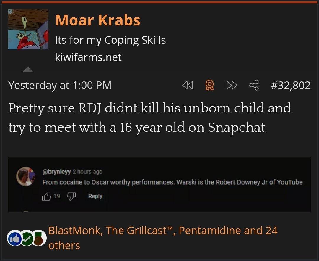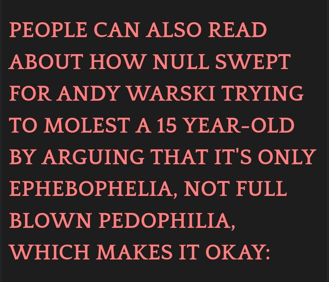 Josh has successfully gaslit his newer, ignorant users that people who don't like Andy Warski for sexting a minor, sharing revenge porn, and sexually assaulting a woman are "discordfaggots." Thankfully the old guard of the thread are there to correct the record. Keep in mind that the site has been crucifying streamer Steven "Destiny" Bonnell over incredibly similar accusations.