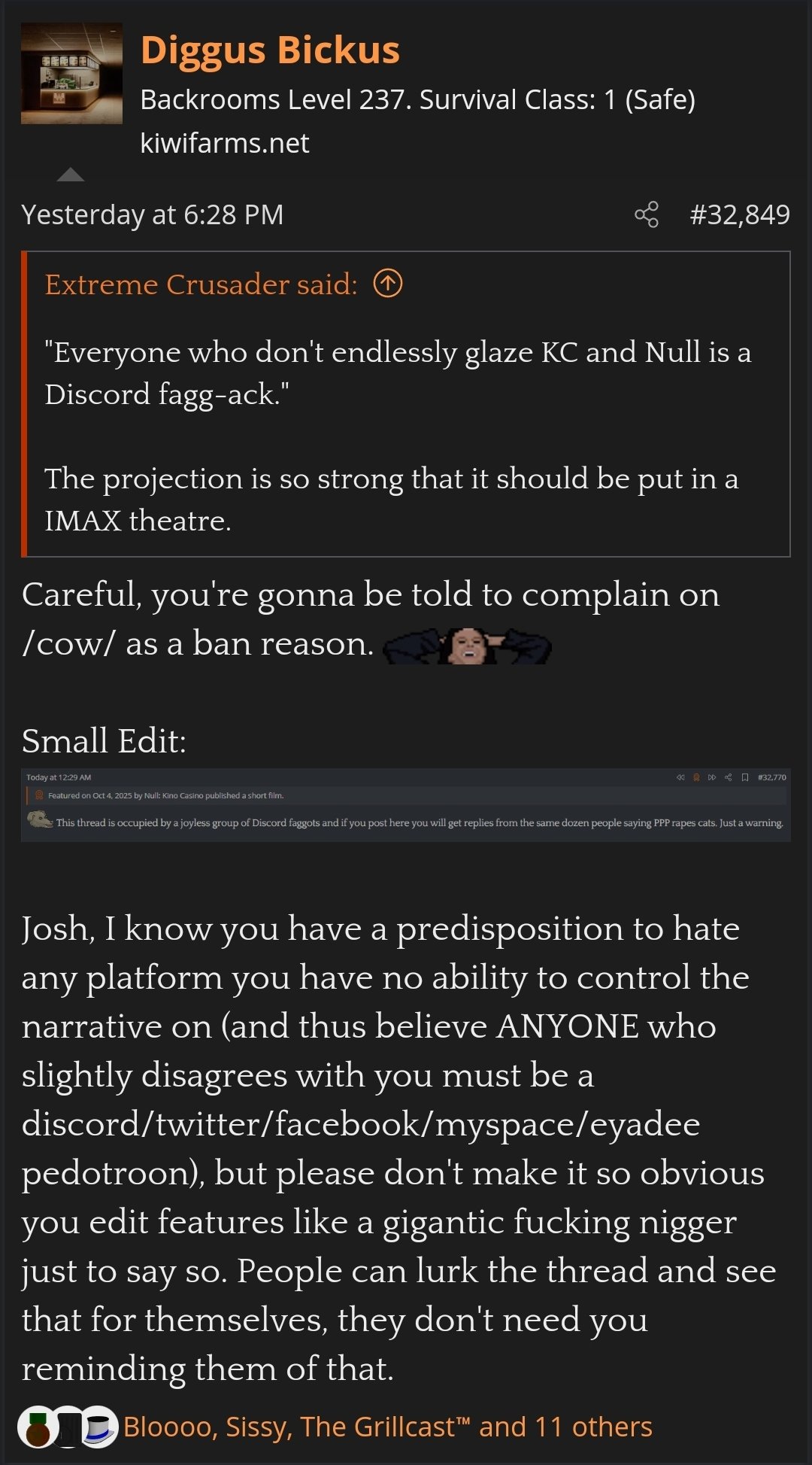 now you are on your cocksucking kiwifarms phase. your next phase will be derailing any threads that are critical/remotely critical of green reddit and josh
