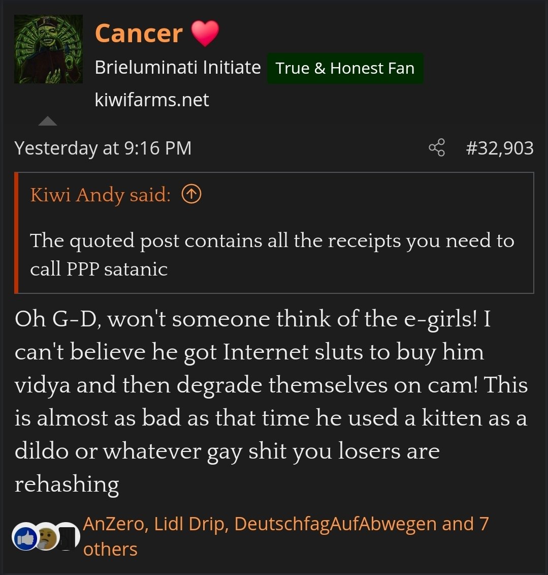 you never change. that's just who you are. every time you've "changed," you inevitably go back to what you were. now you are on your cocksucking kiwifarms phase. your next phase will be derailing any threads that are critical/remotely critical of green reddit and josh