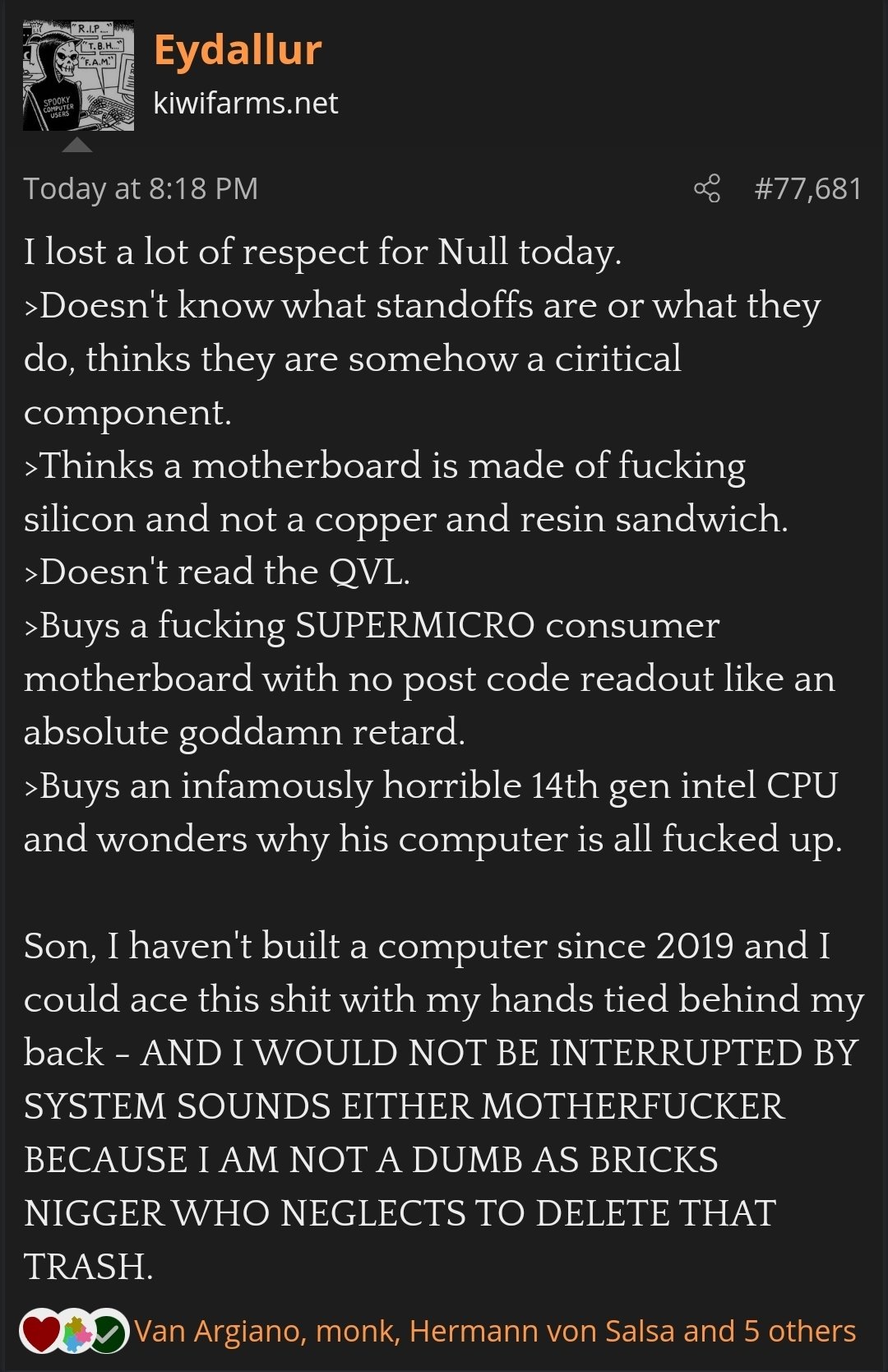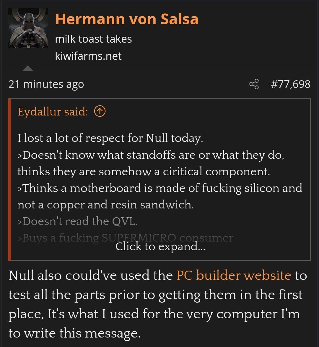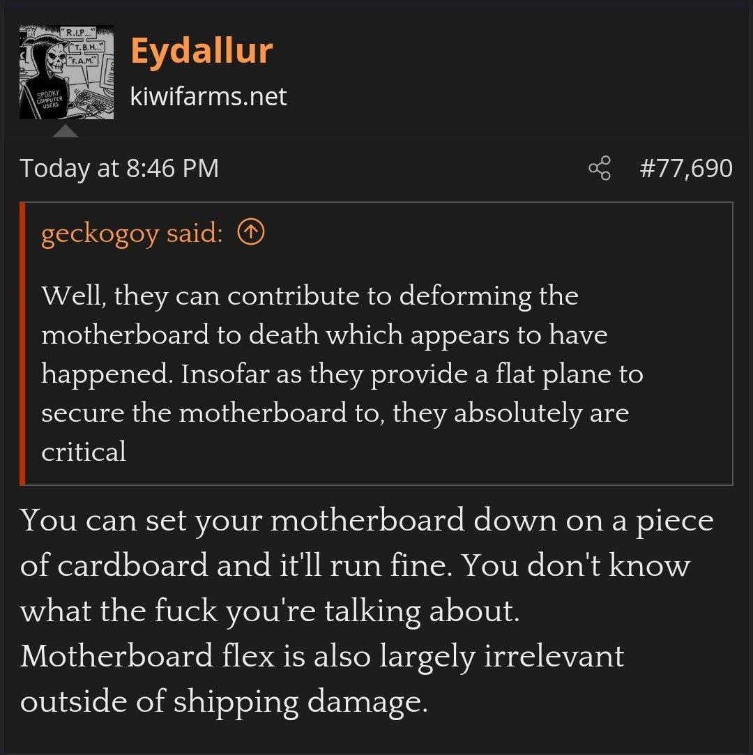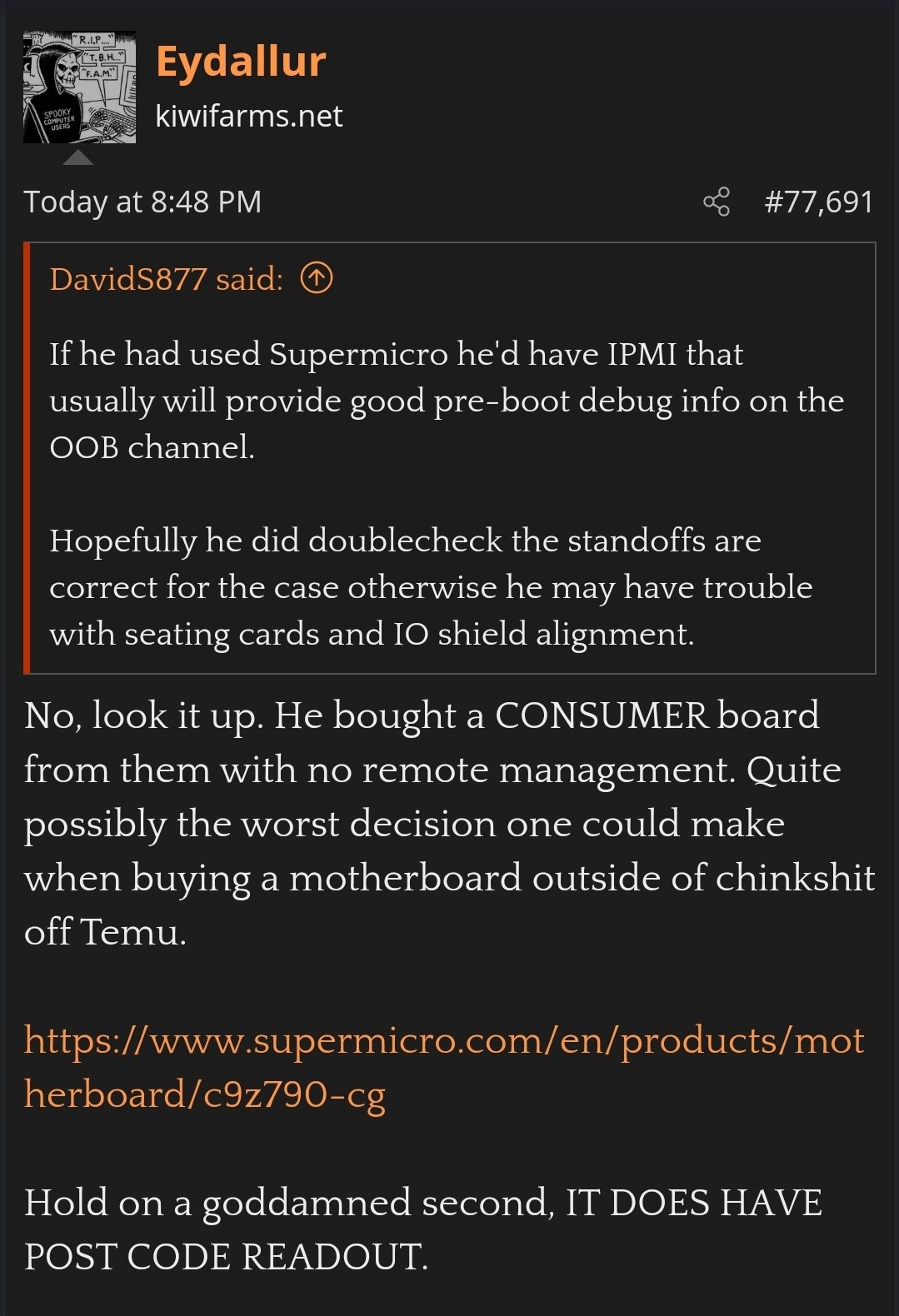 People who know what they're talking about have entered the thread.Whiz Kid Josh can't build a computer. He may drop it off at "the shop" so some jeets can fix it for him.