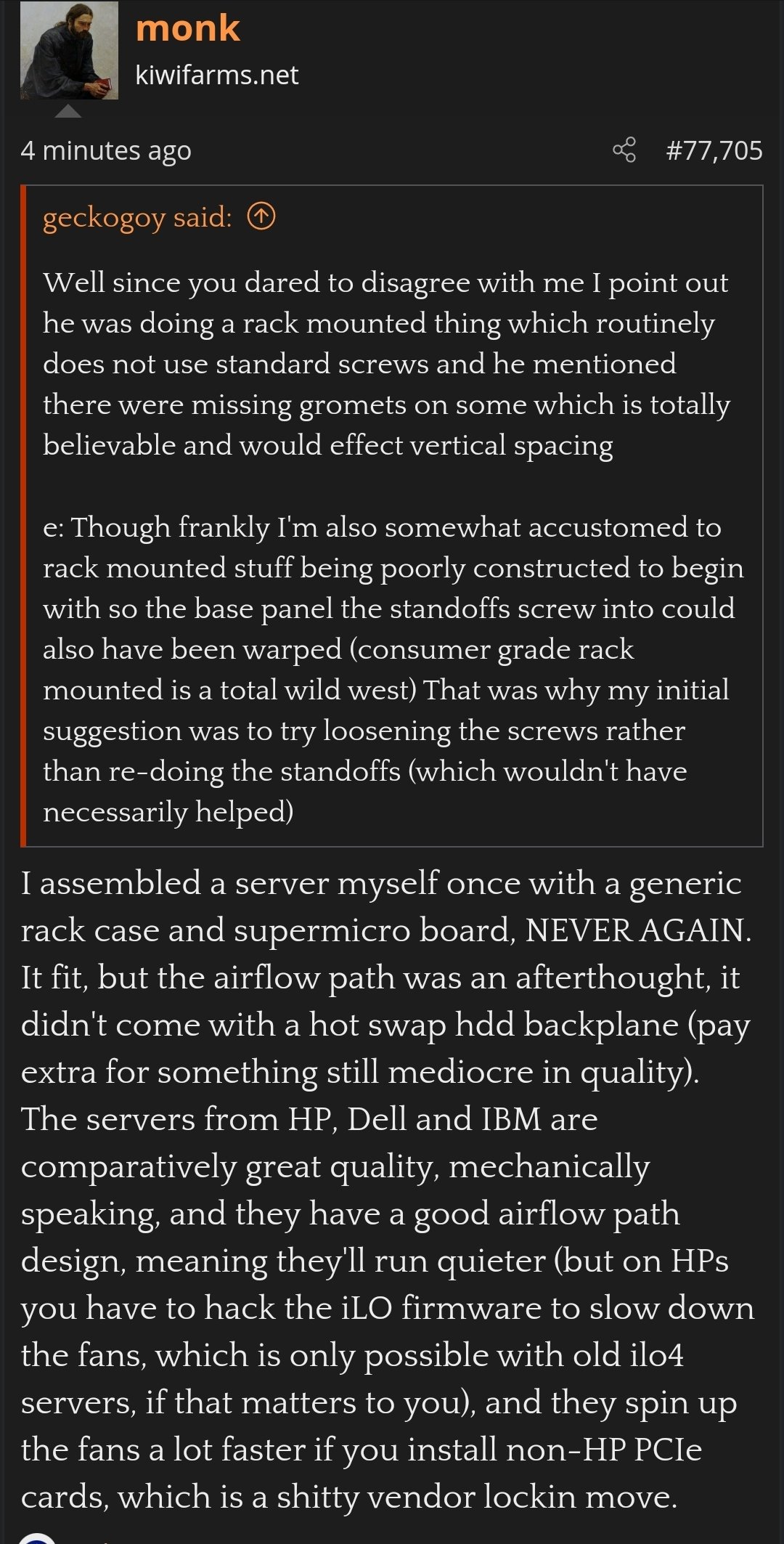 They believe that they have esoteric knowledge of the world that no one else understands because furries and transgenders have taken over. Itās like I said, scorned hero complex, they want to help the world but the world forsakes them. Itās a really gay way of thinking.So now they're the forum that hates everything and pretends to be something they aren't, and they've been in an echo chamber so long they no longer realize how insane they sound.