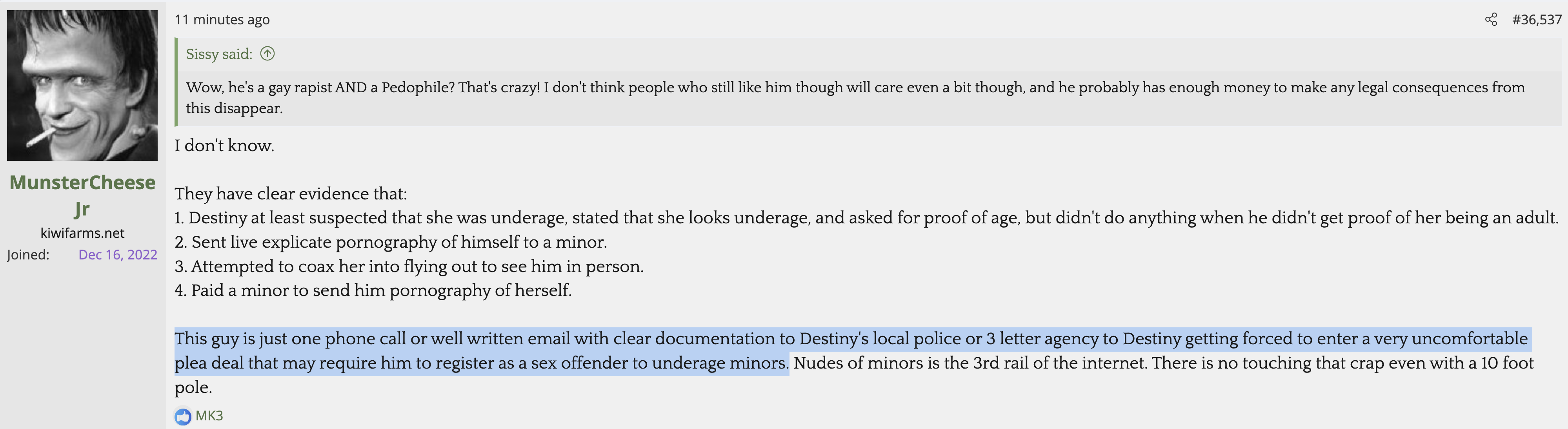 "I just think the 15 year-old girl is cute is all,YOU HAVE A 15 YEAR OLD FROM A LITERAL HARDCORE PORN GAME AS AVATAR, POT MEET KETTLE